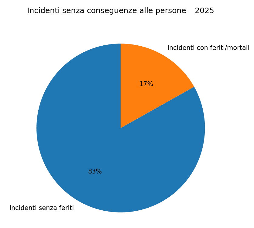 La maggior parte degli incidenti non provoca feriti Nel corso del 2025, oltre l’80% degli incidenti stradali rilevati si è concluso senza conseguenze alle persone, con danni limitati ai soli veicoli.