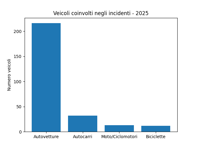 L’analisi per tipologia evidenzia una prevalenza di autovetture private, seguite da veicoli commerciali e mezzi pesanti.