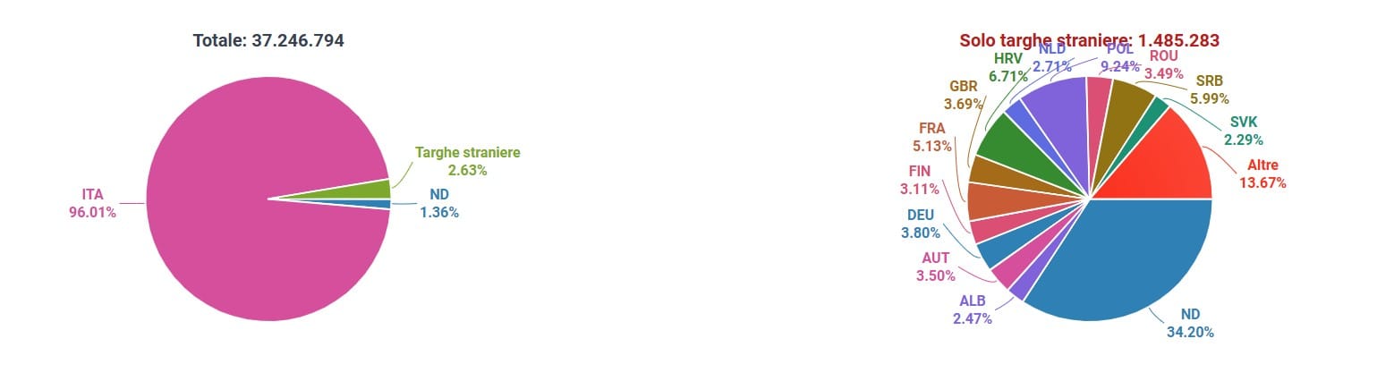 La presenza di veicoli con targa estera, pur minoritaria rispetto al totale, conferma l’apertura e l’interconnessione del territorio con altre aree nazionali ed europee.